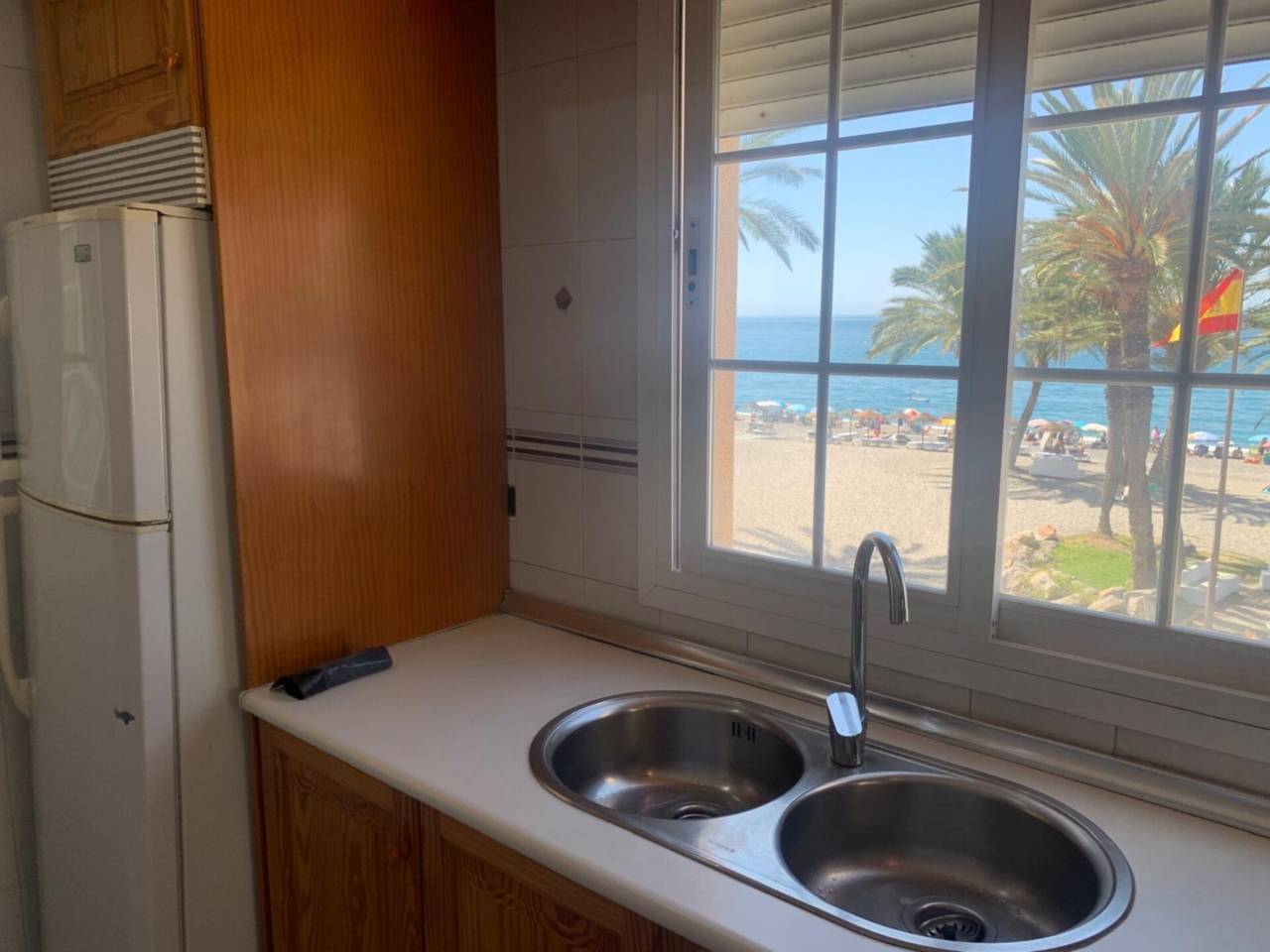 DISPONIBLE ALQUILER ANUAL. Apartamento en primera línea de playa en La Herradura. Dispone de 3 habitaciones, 2 baños, cocina individual exterior con vista al mar, salón comedor y terraza.