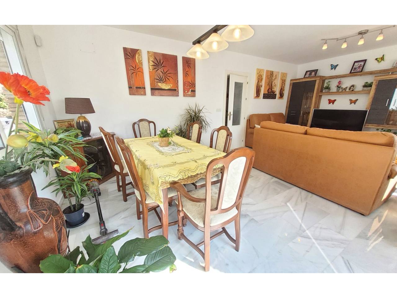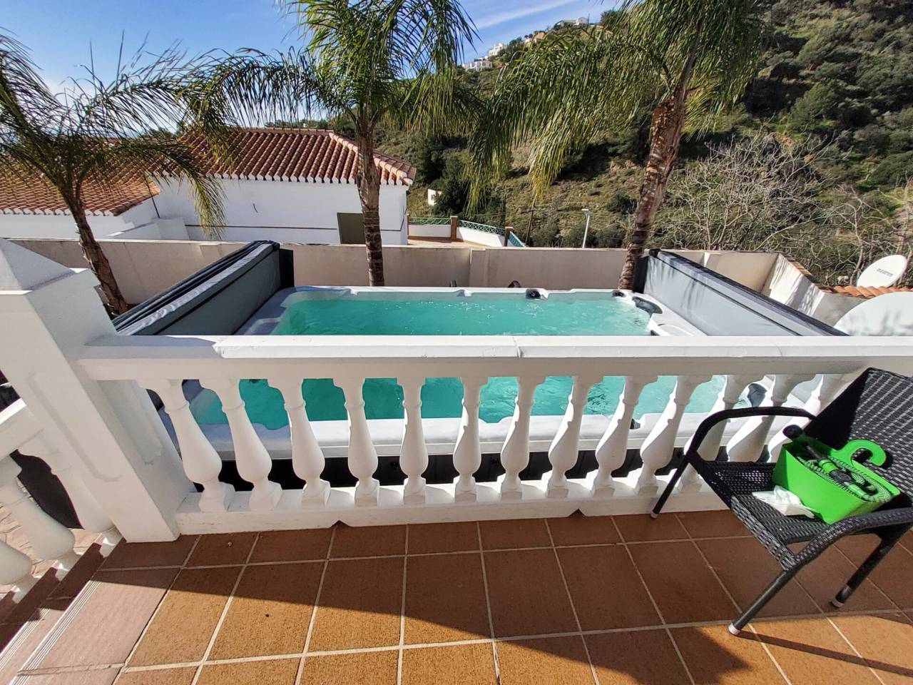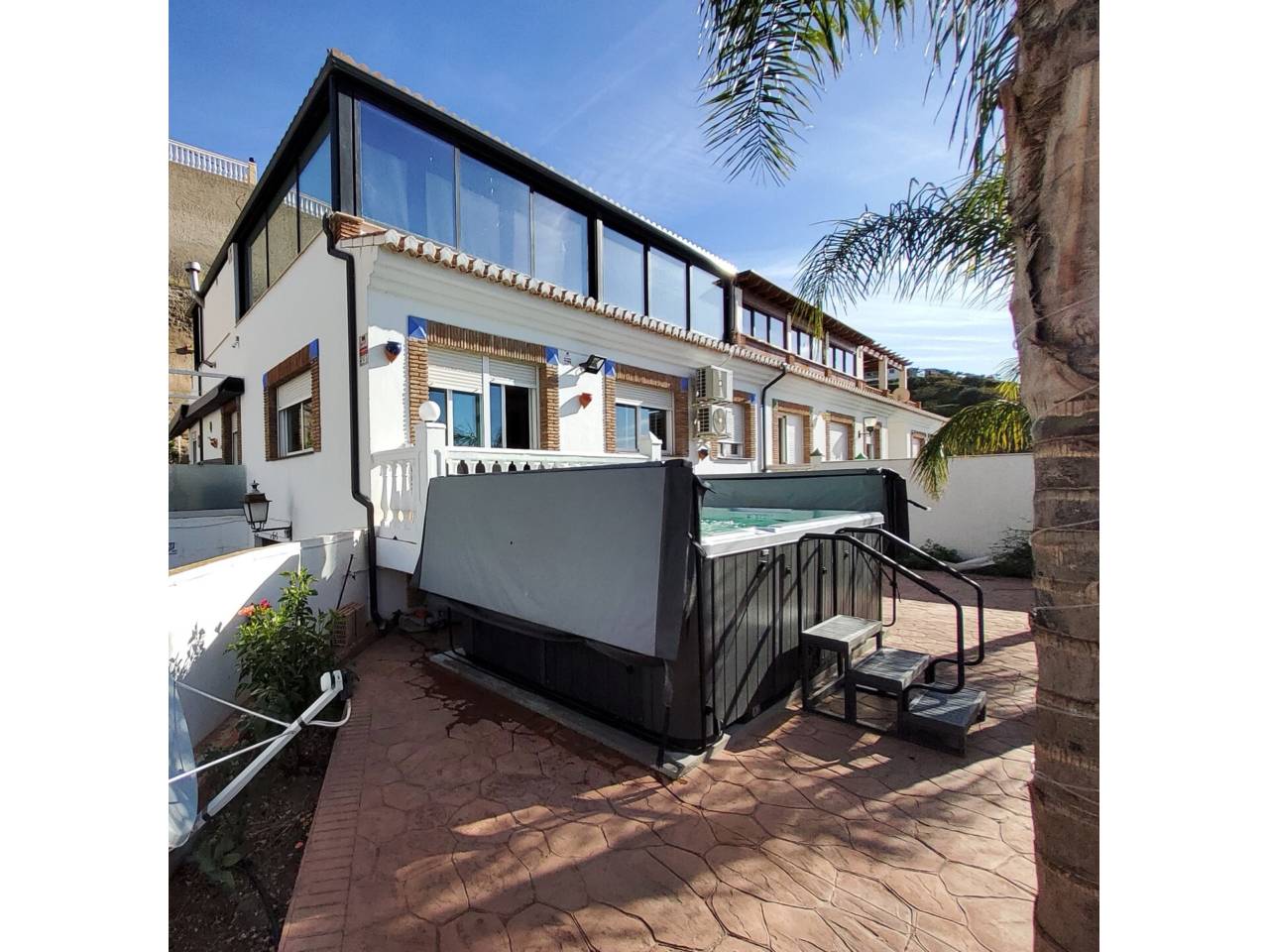 Exclusiva vivienda en Rancho Río Verde, una tranquila y encantadora urbanización situada en las colinas de Almuñécar, a tan solo unos minutos en coche del centro y de sus playas. Ubicada dentro de un cuidado conjunto residencial, esta propiedad ofrece privacidad, amplitud y unas agradables vistas al mar y al pueblo, en un entorno natural privilegiado. La vivienda se distribuye en varias plantas, combinando funcionalidad y espacios pensados para el confort y el disfrute. En la planta de acceso encontramos un amplio garaje privado, junto a la entrada principal, además de dos prácticos trasteros de gran tamaño que aportan un excelente espacio de almacenamiento. En la planta principal se abre un luminoso salón, acompañado de tres dormitorios dobles y dos cuartos de baño completos, uno de ellos en suite. La cocina, amplia y totalmente equipada, dispone de lavadero independiente con salida directa a una gran terraza trasera y al jardín, creando un espacio perfecto para la vida diaria y el ocio al aire libre. Desde el salón se accede a la terraza frontal, donde se encuentra uno de los grandes atractivos de la vivienda: un espectacular jacuzzi tipo swim-spa incluido en el precio, ideal para relajarse mientras se disfruta de las vistas. La planta superior ofrece un espacio diáfano y versátil con salón y chimenea, cocina americana con zona de barbacoa, un dormitorio adicional y un aseo, convirtiéndose en una zona perfecta para invitados o para disfrutar de momentos especiales en un ambiente más independiente. La vivienda cuenta además con placas solares, aportando eficiencia energética y un importante ahorro en el consumo.