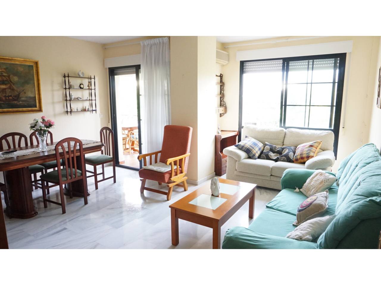 Amplio y bonito apartamento en la Avenida Costa del Sol, en un buen edificio y muy cerca de todo comercio y de la playa de San Cristóbal. Tiene 2 habitaciones dobles, un amplio cuarto de baño, salón comedor con terraza hacia la vega, por lo que tiene muy bonitas vistas, además de tranquilidad. La cocina está completamente equipada y dispone de lavadero. Ideal para vivir todo el año, o disfrutarlo en vacaciones. Se vende completamente amueblado y equipado.