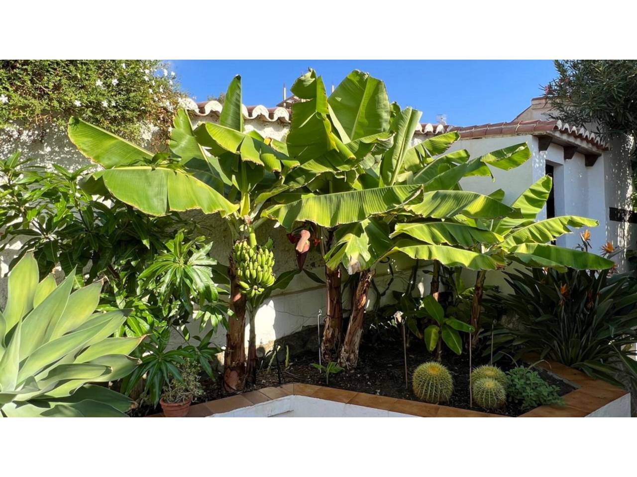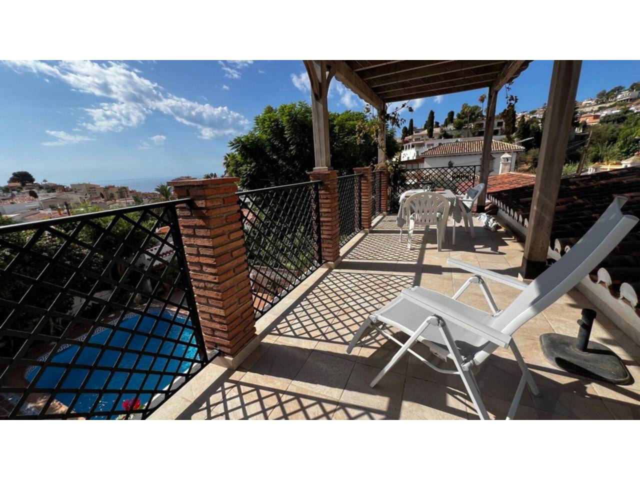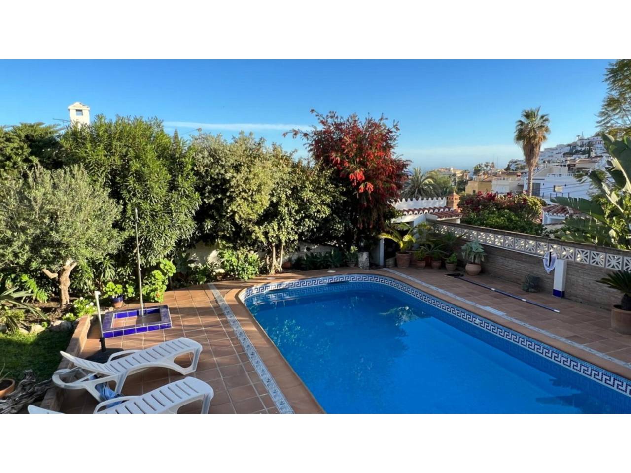Villa andaluza con piscina y vistas al mar en Almuñécar. Descubre esta encantadora villa de estilo andaluz, construida en 1980, que combina el encanto tradicional con todas las comodidades modernas. Con 177 m² construidos sobre una parcela de 426 m², esta propiedad ofrece un entorno tranquilo a solo 10 minutos a pie de la playa. La vivienda se distribuye en una sola planta, sin escaleras, y cuenta con un amplio y luminoso salón con chimenea, un acogedor comedor, tres dormitorios con aire acondicionado y dos cuartos de baño. En el exterior, disfrutarás de un precioso jardín mediterráneo, cuidadosamente mantenido y plantado con bananos, olivos y árboles frutales que aportan un ambiente relajante y natural. Las tres terrazas y la pérgola con vistas panorámicas al mar invitan a descansar y disfrutar de la vida al aire libre. La gran piscina ofrece un oasis de frescura en el corazón del jardín, mientras que un aparcamiento cubierto con pérgola completa esta magnífica propiedad. Esta villa destaca por su auténtico estilo andaluz, su jardín lleno de vida y sus impresionantes vistas al mar. Un verdadero remanso de paz, sin escaleras, ideal para vivir todo el encanto de Almuñécar. IBI: 670 €. Las superficies indicadas tienen carácter descriptivo y son aproximadas. Sin comisión para el comprador.